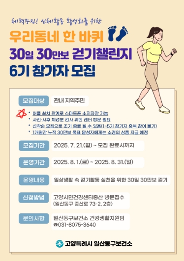 참여를 원하는 지역주민은 신청기간 내 고양시민건강센터·중산 방문을 통해 신청 가능하다.