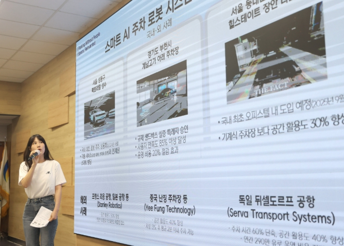 우선 1조는 주차난과 공간 비효율 문제 해결을 위해 AI 로봇 주차 시스템을 제안했다. 자율주행 로봇이 차량을 자동으로 주차해 공간 활용도를 높이고 시민의 주차 편의를 개선하는 방안을 제안했다.