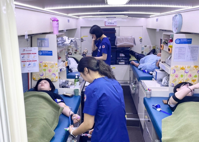 장마와 폭염으로 헌혈 참여가 줄어드는 여름철, 혈액 수급난 예방을 위해 진행한 이번 헌혈운동에는 군포문화재단 직원들 21명이 헌혈차를 찾아 헌혈운동에 동참했다.