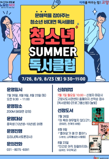 프로그램 신청은 7월 7일 오전 10시부터 고양시도서관센터 누리집에서 할 수 있으며, 중학생 20명을 선착순 모집한다.