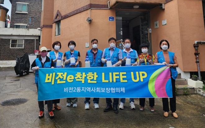 소독 및 방역 서비스는 지역사회보장협의체 후원으로 추진했으며, 비전2동 관내 취약계층이 거주하는 원룸 건물 1개 동(19가구)을 선정해 거주자의 동의를 얻어 방문 소독 및 소독 물품을 배부했다.