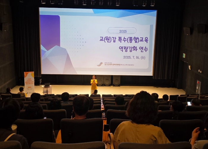 이번 연수는 장애 공감 문화 확산을 통한 행복한 통합교육을 기대하며 그림으로 세상과 소통하는 ‘정은혜 작가’의 다큐멘터리 영화 ‘니얼굴’ 상영과, 일반학교에서의 성공적인 통합(특수)교육 운영을 위하여 ‘알쓸특잡-알아두면 쓸데있는 특수교육 잡학사전’이란 주제로 강연을 진행했다.