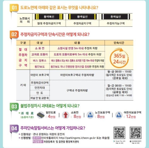 이천시 관계자는 “안전사고 예방을 위해 절대 주정차 금지구역을 다시 한번 확인하여 시민들의 안전한 보행환경 조성에 도움이 되길 바라며 안전한 교통문화 조성에 적극 협조해 주시길 바란다”라고 당부했다.