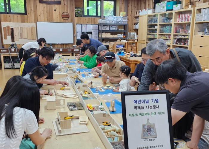 한편 물맑음수목원은 자연, 문화, 건강, 배움이 고루 숨쉬는 체험형 수목원으로, 목공체험 외에도 목재 팬던트를 만드는 ‘나무에 심은 나무’, 산림문화·치유 프로그램 등 다양한 체험을 제공하고 있다.