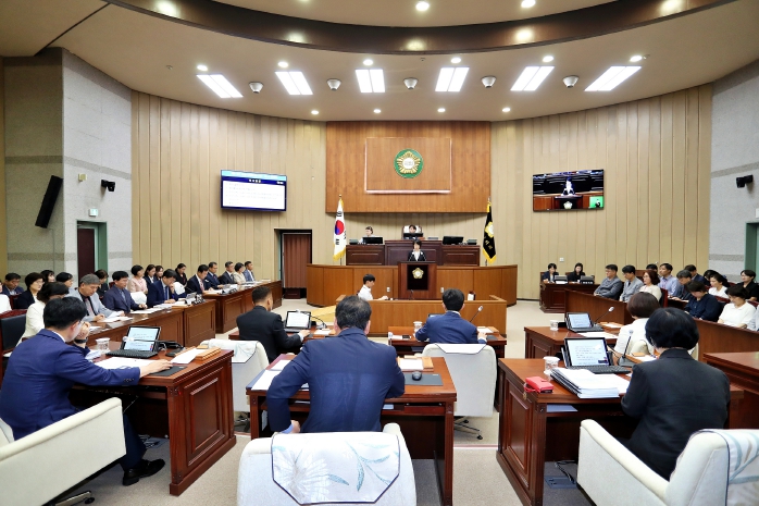 김학기 의장은 개회사를 통해 “기록적인 폭우로 인해 피해를 입은 지역 주민들에게 위로의 말씀을 전한다”며 “집행부는 여름철 재해 예방과 취약지대 안전점검에 만전을 기해주길 바란다”고 당부했다.