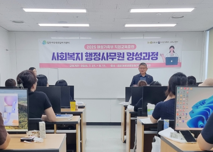 '사회복지 행정사무원 양성과정'은 김포시와 여성가족부가 함께 진행하는 직업교육훈련으로, 미취업 여성에게 사회복지 기관의 행정사무원으로 취업 또는 창업할 수 있는 기회를 제공하기 위해 2021년부터 운영되고 있다.