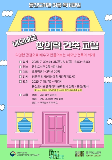 통진도서관은 이번 여름 독서교실에서 관내 초등학교 1~3학년을 대상으로 어린이 창의건축지도사와 함께 기초 건축 이론부터 세계의 유명한 랜드마크를 통해 건축물의 역사까지 다양한 관점으로 건축을 배울 수 있는 기회를 제공한다.