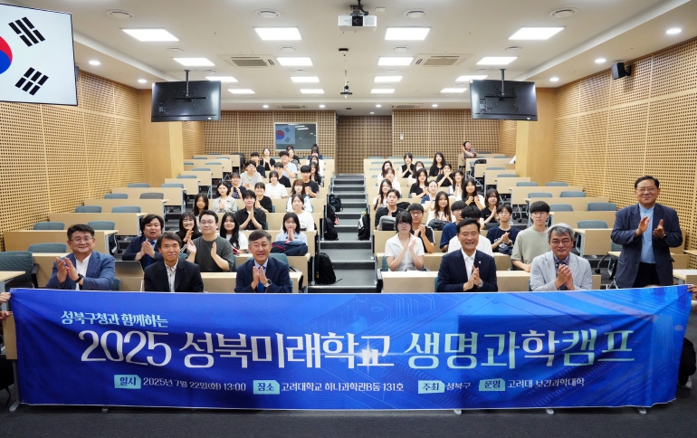 7월 22일 고려대학교 하나과학관에서 진행된 '생명과학 전공캠프 개회식'에는 이승로 성북구청장과 박재용 보건과학대학 학장, 김성욱 연구소장, 이민우 교수, 양성일 前 보건복지부 차관 등 주요 인사가 참석해, 미래를 준비하는 학생들을 격려했다.