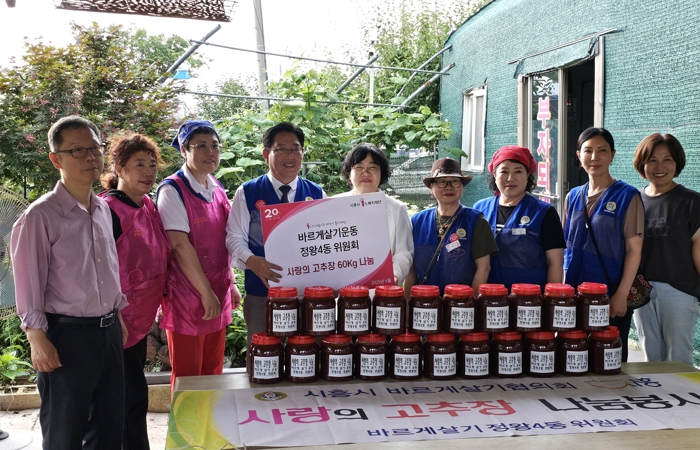 바르게살기운동 정왕4동 위원회 김진완 위원장은 “작은 정성이지만, 이 고추장이 어려운 이웃들에게 조금이나마 힘이 되고, 따뜻한 위로가 되기를 바라는 마음으로 준비했다”라며, “앞으로도 지역 사회의 이웃들에게 지속적인 관심으로 나눔을 실천하며, 더불어 사는 공동체를 만드는 데 앞장서겠다”라고 밝혔다.