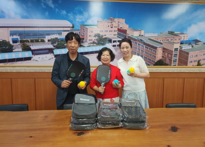 기탁된 패들 테니스 라켓은 어린이들이 쉽게 접할 수 있는 새로운 형태의 라켓 스포츠로, 체력 향상은 물론 협동심과 사회성, 팀워크를 기를 수 있는 운동으로 각광 받고 있다.