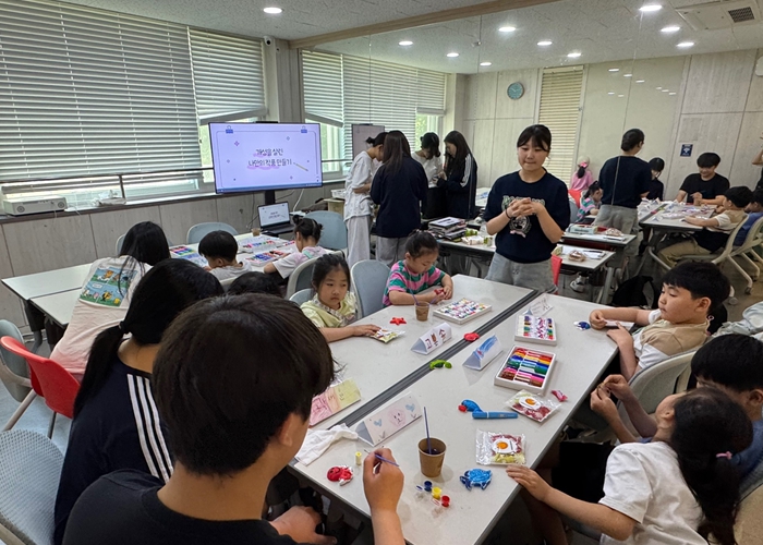 ‘힐링팔레트’는 관내 중학생들로 구성된 청소년 자치 미술동아리로, 미술에 흥미와 재능을 가진 청소년들이 직접 1일 교사가 되어 초등 저학년 아동을 위한 창의미술 프로그램을 기획·운영하는 활동이다. 수업은 매월 1회 정기적으로 운영되며, 주제에 따라 그리기, 만들기 등 다양한 미술 활동이 진행된다.