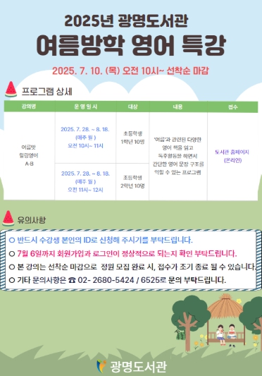 이번 특강은 광명7동 ’우리동네 시장실’에서 접수된 “어린이를 위한 영어 프로그램을 지속적으로 운영해 달라”는 주민 의견을 반영해 기획됐다.