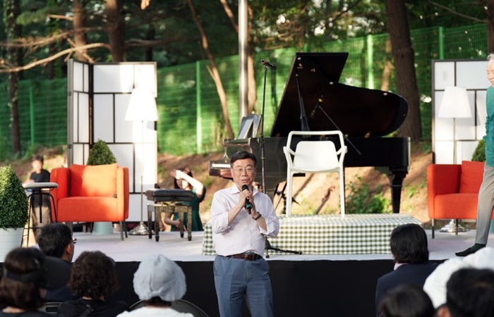음악홀 명예 예술감독을 맡은 금난새 지휘자의 소개로 인사말을 전한 신 시장은 “28년간 활용되지 못했던 이곳이 마침내 시민들을 위한 공간으로 새롭게 태어나고 있다”며 “오늘은 성남물빛정원이 진정한 시민 문화공간으로 재탄생하는 역사적인 날”이라고 말했다.