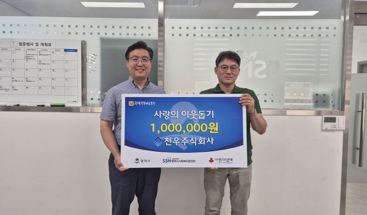 천우주식회사 김진원 대표이사는 “오늘의 나눔이 어려움을 겪는 지역 이웃들에게 조금이나마 도움이 됐으면 한다”며 “앞으로도 지역과 함께 상생하는 천우주식회사가 되도록 최선을 다하겠다”고 밝혔다.