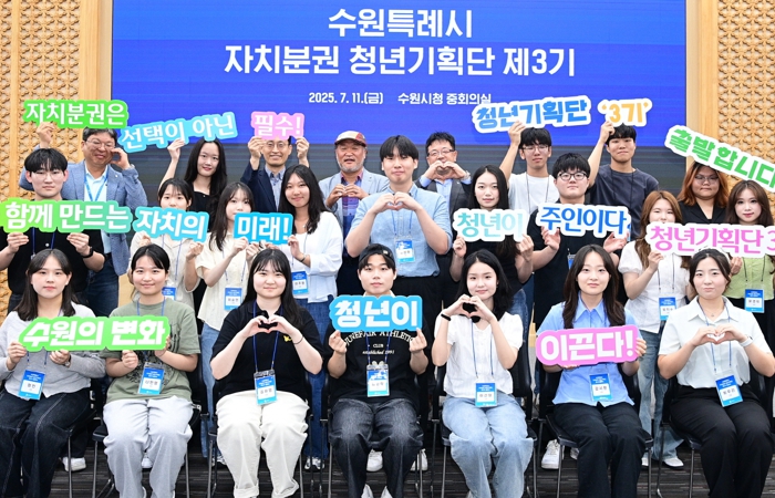 수원시는 11일 시청 중회의실에서 수원특례시 자치분권 청년기획단 제3기 발대식을 열고 청년기획단에게 위촉장을 수여했다. 청년기획단 3기는 수원 거주 청년, 대학생 등 29명으로 구성됐다.