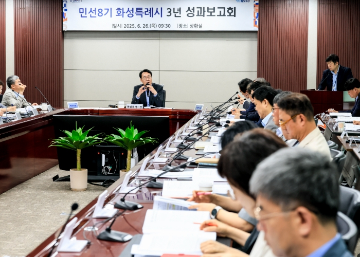 이번 보고회는 정명근 화성특례시장을 비롯해 정구선 제1부시장, 조승문 제2부시장, 실국소장 및 산하 공공기관장 등 60여 명이 참석한 가운데 진행됐으며 각 부서별 성과를 종합 점검하고 핵심 정책의 추진 현황과 향후 계획을 심도 있게 논의하는 자리로 마련됐다.