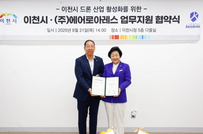 이번 협약은 지난 8월 8일 체결한 KOREA-ITC와의 상호 협력 협약에 이어 실제 기업 유치의 첫 사례로, 이천시 드론산업 육성의 실질적인 출발점으로서 의미가 크다. 특히 ㈜에어로아레스는 이천시가 유치한 1호 첨단 드론 기업으로, 이번 협약을 통해 이천시는 본격적인 드론산업 생태계 구축을 위한 기반을 갖추게 됐다.