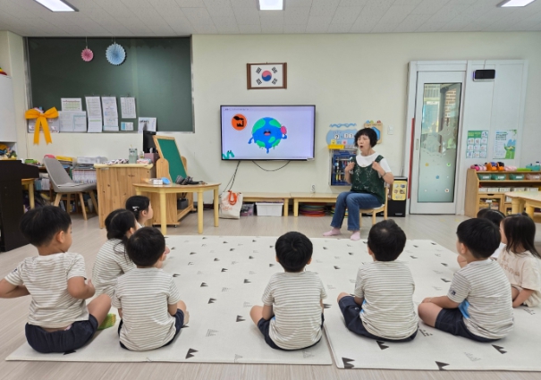 이번 환경학교는 각 연령별로 진행됐으며, ‘초록아, 파랑아 부탁해’라는 활동 주제로 이루어졌다. 이날 자원순환의 중요성 알고, 지구가 뜨거워지는 원인과 영향을 살펴보며 유아들에게 쉽고 재미있게 전달되는 시간을 가졌다.