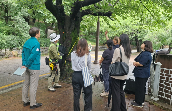 이날 수원시, 산림청, 경기도, (사)한국가로수협회 등 관계자 10여 명은 육안으로 수관폭, 지하고 형상, 수세 등 활력도를 살폈다.