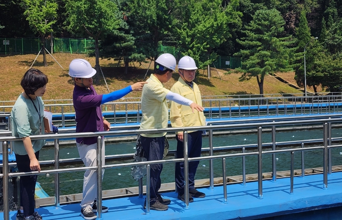 이날 김종호 수원시 상수도사업소장, 담당부서 직원 등은 파장정수장을 대상으로 유충 발생 여부, 녹조 확산 여부 등을 점검했다.