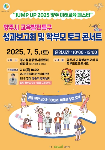 시는 오는 5일 오전 10시 ‘경기섬유종합지원센터 대강당’에서 ‘양주시 교육발전특구 시범사업 성과보고회 및 학부모 토크콘서트’를 개최한다고 밝혔다.