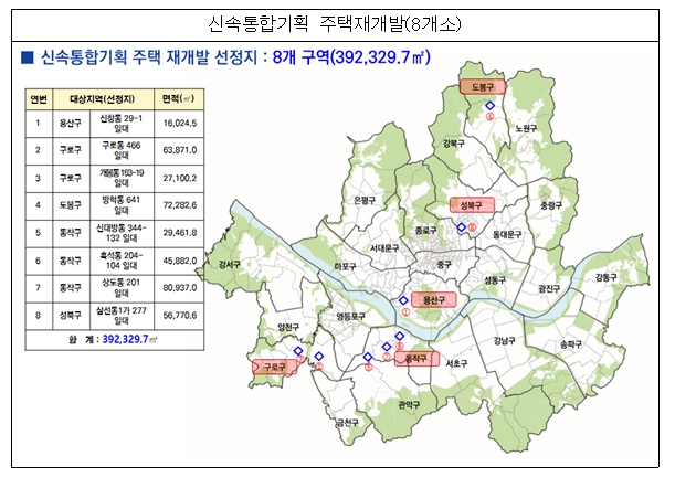 서울시는 7월 18일 제7차 도시계획위원회 수권분과위원회에서 6월 30일 3차 후보지 선정위원회에서 신통기획 주택재개발 후보지로 선정된 8개 구역(총 392,329.7㎡)을 토지거래허가구역으로 신규 지정했다고 밝혔다.