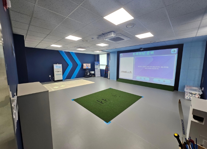 이번에 조성된 ‘스마트운동실’에는 전면 스크린형과 바닥 스크린형 가상현실 운동장비가 각각 1대씩 설치되어 있어, 실내에서도 생동감 있는 스포츠활동을 체험할 수 있다. 이용자들은 양궁, 축구, 농구 등 다양한 콘텐츠를 통해 재미있게 신체활동을 하면서 자연스럽게 운동 효과도 얻을 수 있다.