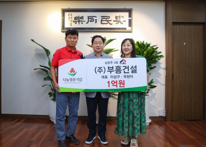 ㈜부흥건설은 이번 가입을 통해 총 1억 원의 기부를 약정했으며, 이 중 1회차로 3,000만 원을 기부해 △남양주시복지재단 △동부희망케어센터 △화도읍 지역사회보장협의체에 각 1,000만 원씩 전달했다.