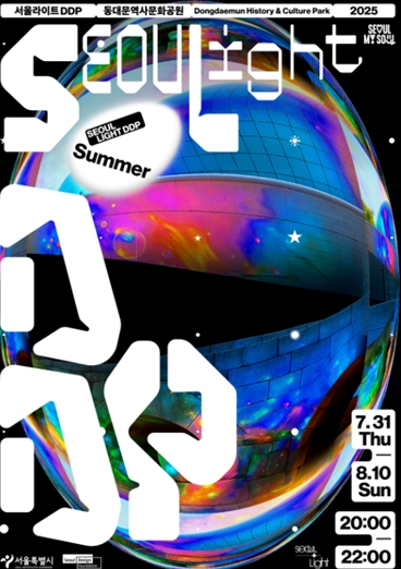 서울디자인재단은 7.31.~8.10. DDP 동대문역사문화공원에서 '서울라이트 DDP 2025 여름'을 선보인다고 밝혔다. 11일 동안 매일 저녁 8~10시 DDP 동대문역사문화공원에서 즐길 수 있다.