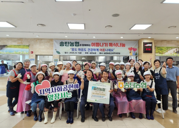 무더운 날씨가 지속되는 가운데 송탄농협(조합장 차홍석)에서는 어르신의 건강을 위한 특식 지원 비용으로 금5,000,000원의 후원금을 전달했으며 매월 첫 번째 금요일마다 정기적으로 경로식당 봉사활동에 참여해주시는 송탄농협고향주부모임(회장 오정은) 봉사단과 송탄농협 차홍석 조합장, 임직원들까지 약 30명의 봉사자가 어르신들을 위한 특식을 위해 직접 조리 및 배식봉사에 참여해 따뜻한 정을 나눴다.