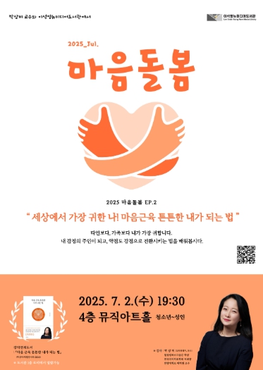 박상미 교수와 함께하는 마음돌봄 토크쇼는 오는 9월, 11월, 12월에도 도서 연계 강의와 지역주민 고민 상담의 형태로 시리즈를 이어 나갈 계획이다.
