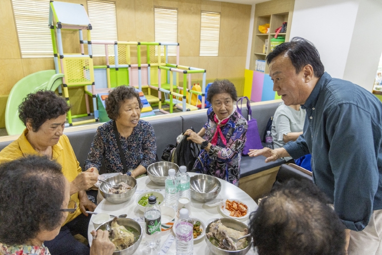 ‘어르신 효 삼계나눔행사’는 지역 주민봉사자들과 함께 어르신들을 모시고 삼계탕과 수박 등을 나누고 소통하는 행사로서 매년 여름에 진행하고 있다. 올해 행사에는 더운 날씨에도 약250명의 어르신에게 삼계탕을 배식을 하는 등 뜻깊은 시간을 가졌다.