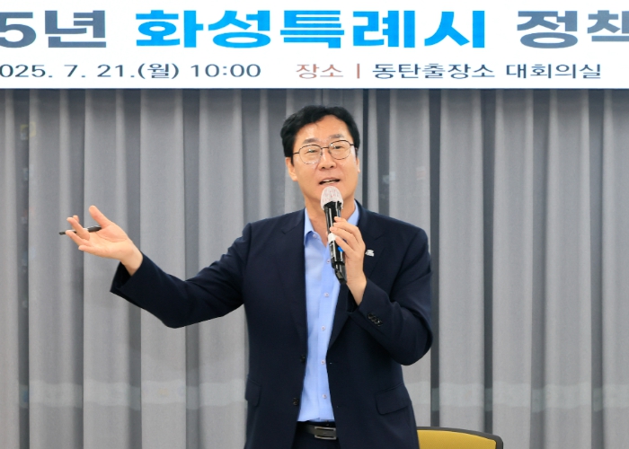 정 시장은 먼저 ▲일반구 설치 추진 현황 ▲25조 투자유치 프로젝트 추진 현황 ▲화성형 기본사회 추진 ▲민생회복 소비쿠폰 추진 현황 ▲화성시 내부순환 도로망 구축 등 시정 전반의 주요 정책을 설명했다.