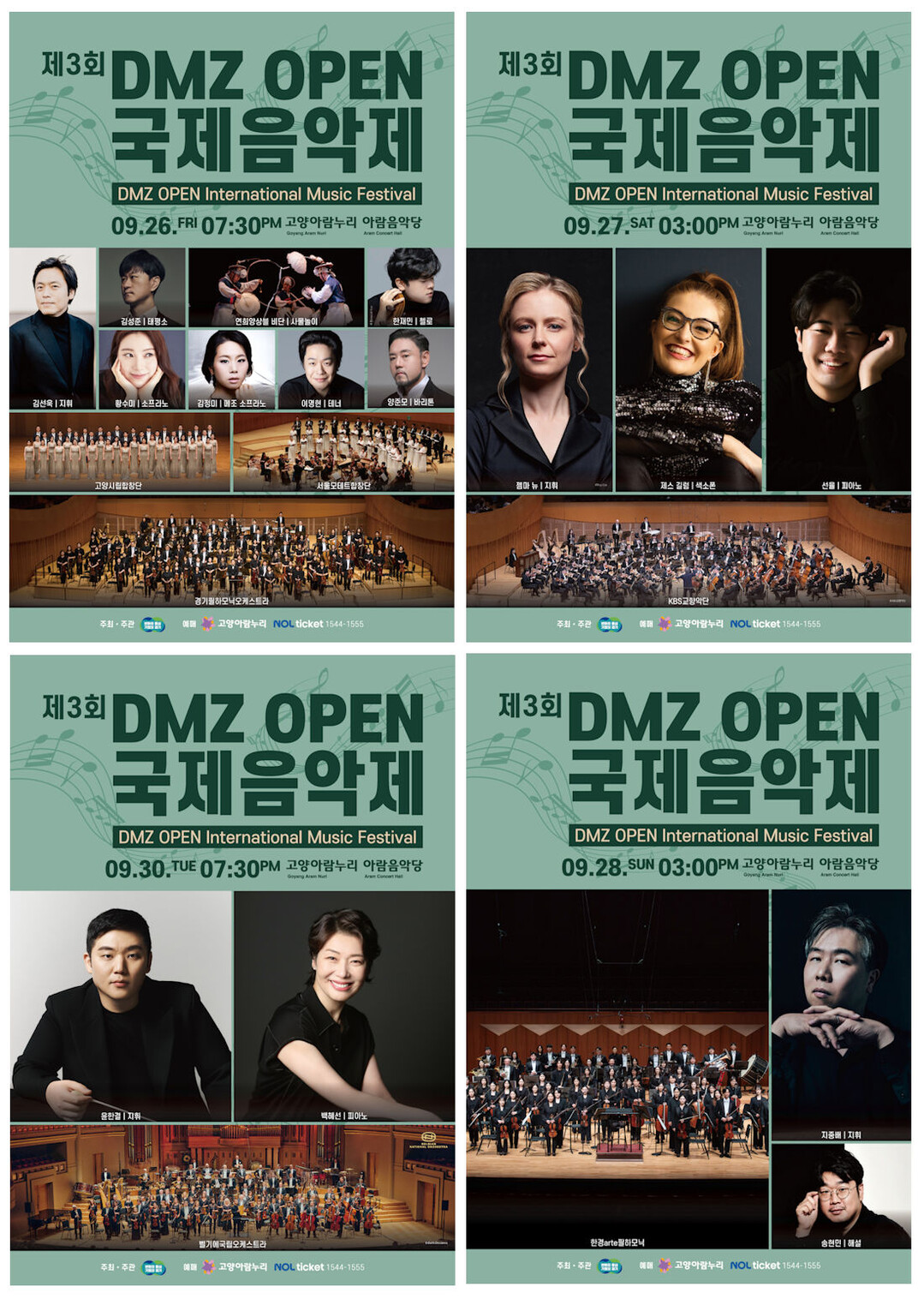 이에 앞서 19일부터 21일까지는 파주 캠프그리브스 탄약고와 김포 애기봉 평화생태공원 야외공연장 등 DMZ 일대에서 특별 사전공연이 열린다. 경기필하모닉, KBS교향악단, 한경arte필하모닉, 벨기에국립오케스트라가 차례로 무대에 올라 평화와 화합을 기원하는 선율을 이어간다.