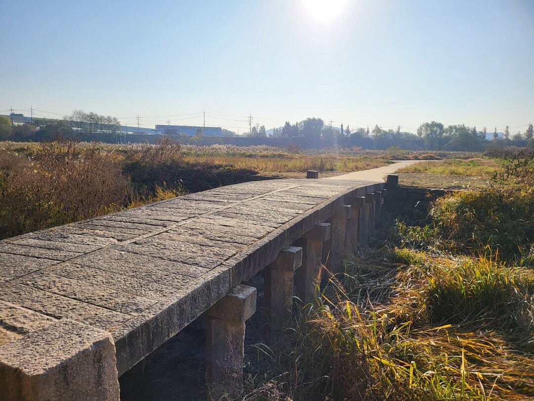 1920년에 세워진 이 돌다리는 경기도 유형문화유산으로 지정된 고양시의 가장 오래된 옛 돌다리로, 24개의 돌기둥 위에 장방형 돌을 견고하게 쌓아 올린 독특한 구조가 100년이 넘는 세월을 묵묵히 견뎌왔다.