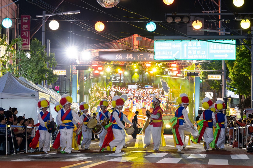 첫날인 27일 오후 6시, 은행나무로 130m 구간에서 지역 주민 단체 18팀이 참여한 행렬이 축제의 시작을 알렸다. 난타, 치어리딩, 태권도 시범, 라인댄스 등 다채로운 공연이 펼쳐졌으며, 특히 전라북도 무형문화재인 고창농악을 전수받은 ‘고창농악전수생연합’이 화려한 춤사위와 신명나는 무대를 선보여 눈길을 끌었다. 이어진 개막식에서는 종묘제례악을 바탕으로 한 무용 퍼포먼스와 ‘미디어 대북’ 공연이 펼쳐졌다. 대형 미러볼과 반사 조명이 은행나무로 일대를 환하게 밝혀 마치 달빛 아래 있는 듯한 환상적인 분위기를 연출했다.