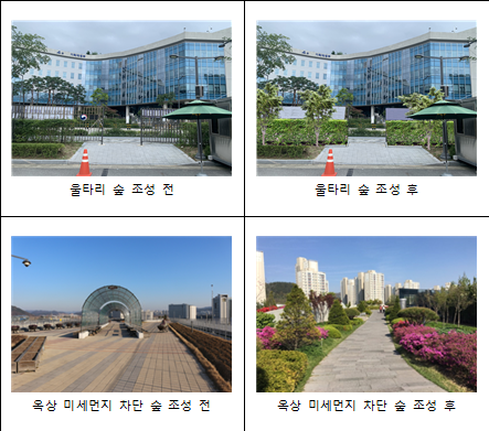 이와 관련해 정부청사관리본부는 올해 약 77억 원을 투입하여 정부세종청사에 ▴정부청사 주변 울타리 숲 조성, ▴옥상 미세먼지 차단 숲 조성, ▴실내 다중이용 공간 식물도입 등을 추진한다.