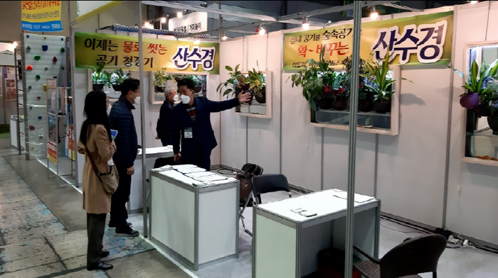 이번 박람회에 참가한 주식회사 산수경은 자연과 더불어 살고자 하는 이들을 위해 가정과 직장에서 손쉽게 설치할 수 있는 자연친화적인 인테리어 조경을 출시하여 각광을 받고 있다.