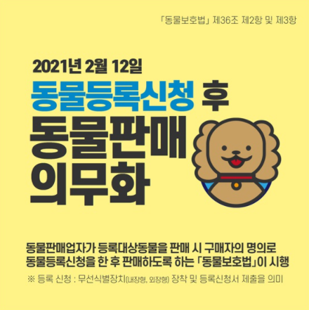 즉, 동물판매업자는 구매자의 명의로 동물등록 신청서를 작성하여 시군구청 등에 제출해야 한다.