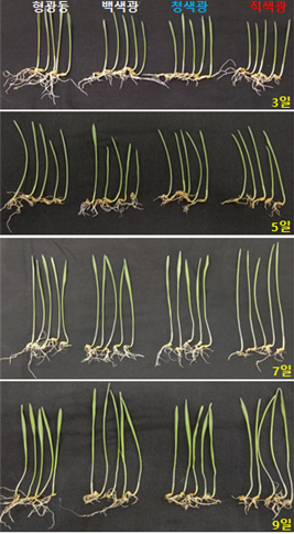 연구진은 보리, 밀 등 새싹작물 속 항산화 물질(글리코실플라본, 폴리코사놀) 합성에 가장 적합한 LED 광원과 처리 조건을 알아내기 위해 새싹작물의 어린 모종에 형광등과 백색광, 청색광, 적색광 등 3가지 색상의 LED 광원을 세기와 시간 등을 조절해 처리했다.