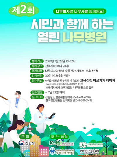 제2회 나무병원은 2021. 7. 29. 전북대학교 교내에서 운영된다