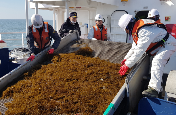 지난 1월 전남·제주 지역에 대량의 괭생이모자반 유입으로 어민들의 피해가 예상 돼, 항공기, 경비함정 등 이용 선제적 예찰을 실시하고, 방제정을 동원하여 약 240톤을 수거하였다.
