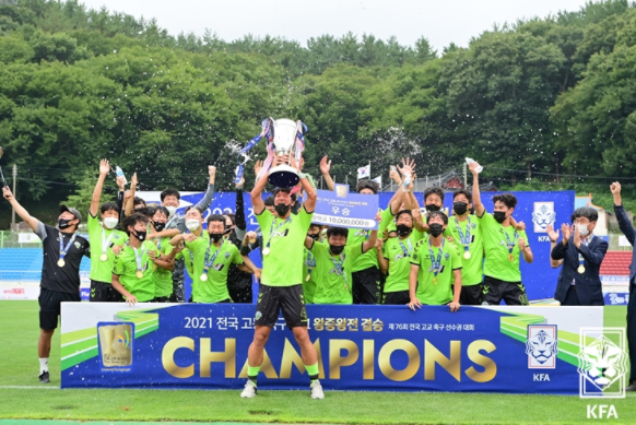안대현 감독이 이끄는 영생고(전북현대U18)가 13일 남해공설운동장에서 열린 2021 전국고등축구리그 왕중왕전 겸 제76회 전국고교축구선수권대회 결승에서 매탄고(수원삼성U18)를 제압했다. 영생고는 전반 엄승민의 멀티골에 후반 박창우와 김창훈의 골까지 더해 4-1 완승으로 우승컵을 들어올렸다.