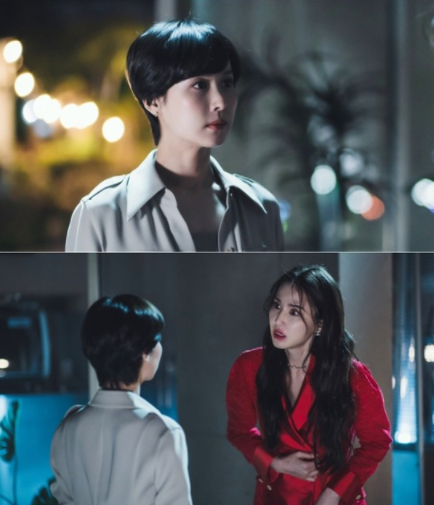 이 가운데 공개된 스틸에는 송여울과 차도영이 어둑한 밤 아무도 없는 곳에서 대화를 나누는 현장이 담겨 눈길을 끈다. 송여울은 차도영을 협박범으로 확신한 듯 단단한 표정으로 맞서 긴장감을 자아낸다.
